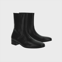 The Lonsdale style is a full leather boot construction with a square toe, covered side zip and a medium height heel. All boots are handmade in limited quantities.